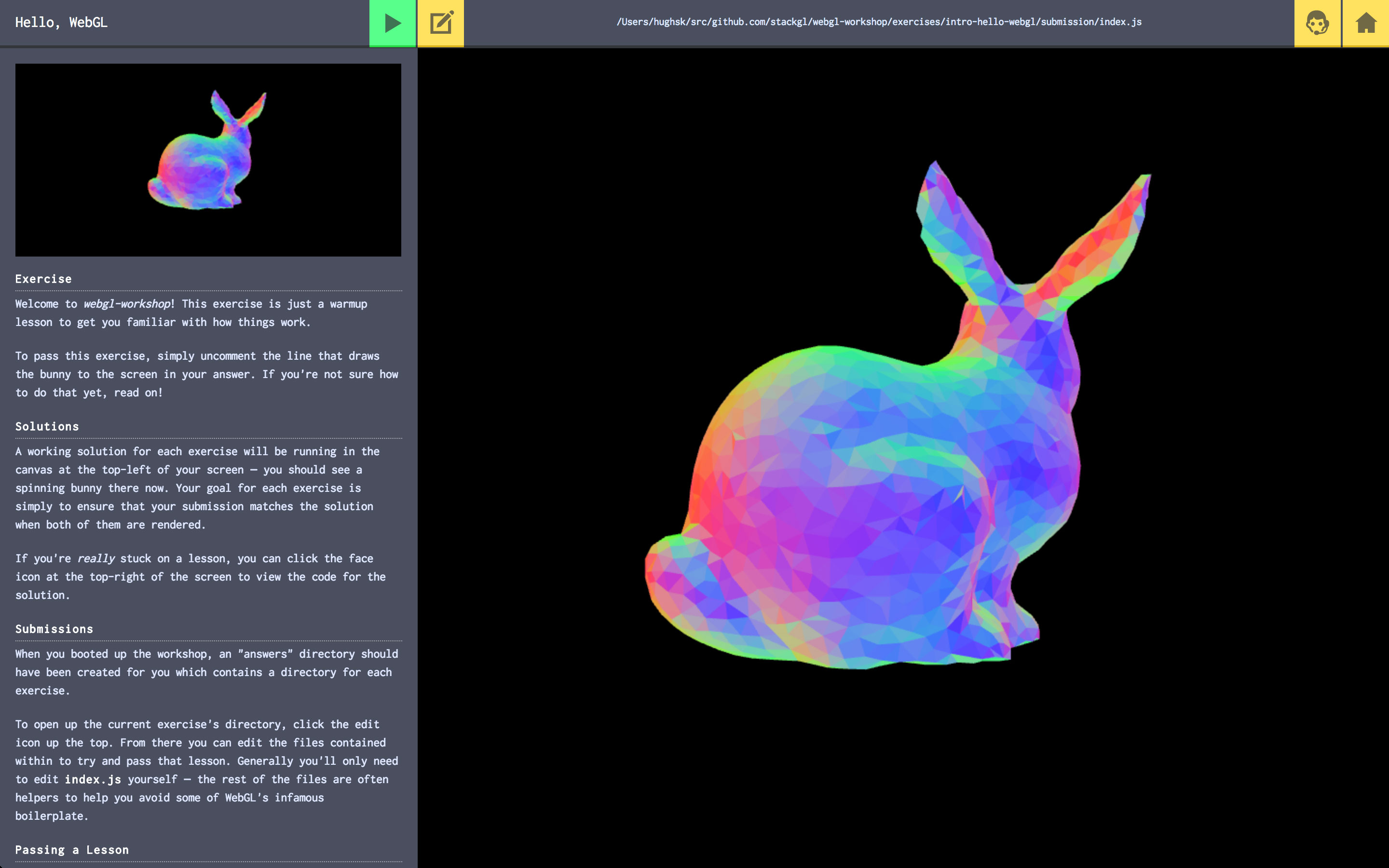 Learn the basics of WebGL in small, manageable chunks. The sequel to shader-school, created for CampJS IV by Mikola Lysenko and Hugh Kennedy.